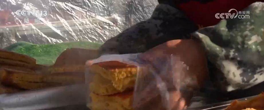 寒冷的天气里,能迅速补充热量的当属碳水化合物。这种现烙的玉米饼色泽金黄、底部焦香,好吃又实惠,摊位前每天都有不少顾客排队购买。