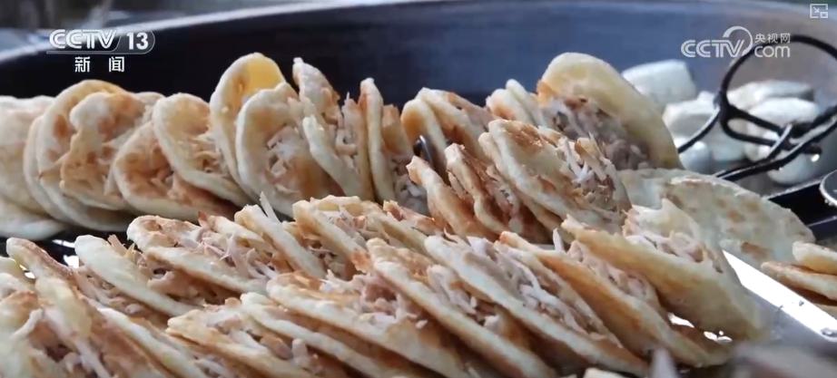 嘎嘎好吃的还有“肉夹”。软乎乎的面剂子放入平底锅,用特制的工具轻轻按压,不一会儿面饼在锅中渐渐鼓起,直至两面金黄、外皮酥脆。出锅后,再塞入提前熏制入味的猪肉或鸡肉,肉香混着饼香,热乎又好吃。